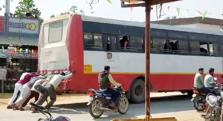एसटी बस बंद, यात्रियों ने लगाया धक्का, गोंदिया तहसील के कुरहाड़ी की घटना