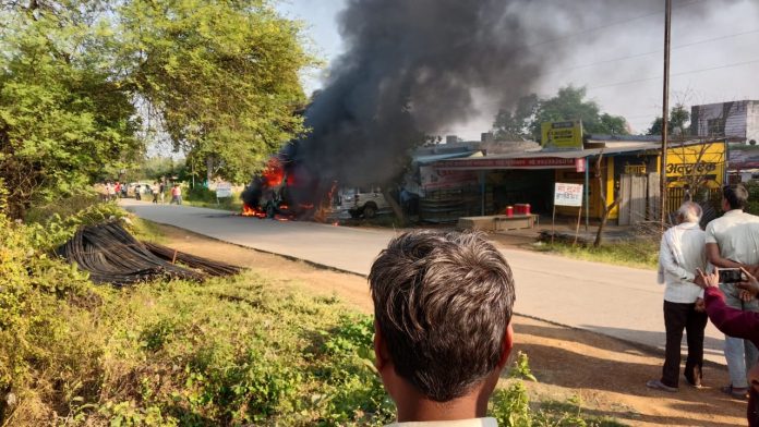 ऑक्सिजन सिलेंडरचा स्फोट, 108 रुग्णवाहिका जळून खाक