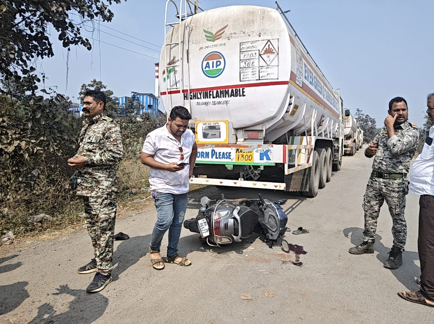 खड़े टैंकर को बाइक की टक्कर, चालक गंभीर घायल