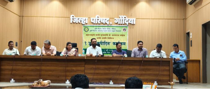 गोंदिया : जिल्हा परिषदेच्या वतीने गोंदिया येथे “कृषि दिवस” मोठ्या उत्साहात साजरा करण्यात आला. या कार्यक्रमाचे अध्यक्षस्थान अध्यक्ष जिल्हा परिषद गोंदिया लायकराम  भेंडारकर, त्यांच्यासोबत जिल्हा अधिक्षक कृषि अधिकारी निलेश कानावडे व इतर मान्यवर उपस्थित होते. कार्यक्रमाची सुरुवात मा. जिल्हा अधिक्षक कृषि अधिकारी निलेश कानावडे यांच्या प्रास्ताविकाने झाली. त्यांनी उपस्थित लाभार्थी, शेतकरी व नागरिकांना कृषि विभागामार्फत राबविण्यात येणाऱ्या विविध योजनांची सविस्तर माहिती दिली. तसेच शेतकऱ्यांनी अधिकाधिक लाभ घ्यावा यासाठी आवाहन केले. या कार्यक्रमात कृषी क्षेत्रातील सुधारणा, आधुनिक तंत्रज्ञानाचा उपयोग व शाश्वत शेतीच्या दृष्टीने उपाययोजना यावर चर्चा करण्यात आली. कार्यक्रमास विविध भागांतून शेतकरी व हितधारक मोठ्या संख्येने उपस्थित होते.