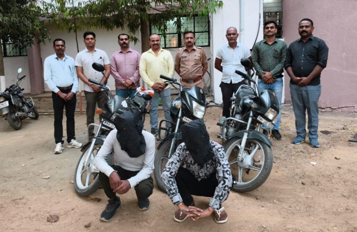 चोरी की तीन मोटरसाइकिल सहित दो आरोपी अरेस्ट, 2.10 लाख रु. का माल जब्त