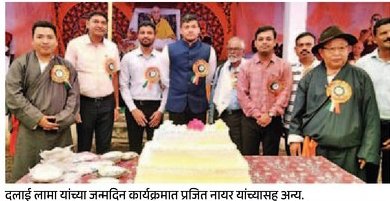 तालुक्यातील तिबेटियन वसाहतमधील तिबेट बांधवांच्या वतीने गोठणगाव स्थित संबोता तिबेटियन स्कूल येथे आयोजित तिबेटियन धम्मगुरू दलाई लामा यांच्या ९० व्या जन्मदिन कार्यक्रमात ते बोलत होते. प्रमुख पाहुणे म्हणून परिविक्षाधीन आयएएस अधिकारी साई किरण, उपविभागीय अधिकारी वरुण शहारे, तहसीलदार अनिरुद्ध कांबळे, तिबेट भारत मैत्री संघ भंडाराचे अमृत बनसोड, पोलिस उपनिरीक्षक घनश्याम रोहनकर, शुभम नवले उपस्थित होते. दलाई लामा यांच्या ९० व्या जन्मदिवसाचे औचित्य साधून जिल्हाधिकारी नायर यांच्या हस्ते केक कापून जन्मदिवस मोठ्या उत्साहात साजरा करण्यात आला.
