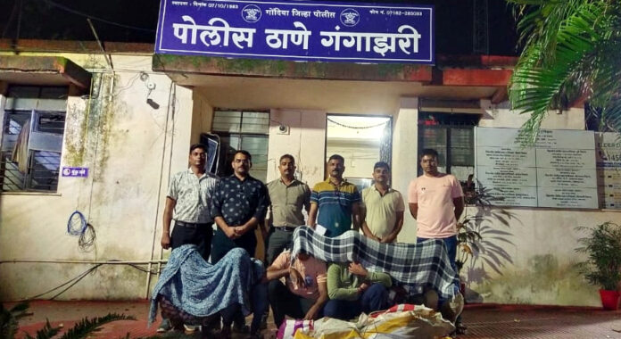पुलिस अधीक्षक गोरख भामरे, अपर पुलिस अधीक्षक नित्यानंद झा ने आगामी त्यौहारों को मद्देनजर रखकर गोंदिया जिले में कानून व व्यवस्था की समस्या उत्पन्न ना हो, जिले में शांति व व्यवस्था बरकरार रखने के लिए जिले के सभी थाना क्षेत्रों में अवैध कारोबार के खिलाफ कार्रवाई करने का निर्देश दिए है. इसी बीच स्थानीय अपराध शाखा को मिली गुप्त जानकारी के आधार पर ग्राम कोहका-सेजगांव जंगल परिसर में जुए अड्डे पर छापामार कार्रवाई की गई. जहां से छह लोगों को हिरासत में लिया गया है. पुलिस ने 14,200 रु. नकद व 2 मोबाइल, ताडपत्री ऐसा कुल 35 हजार 200 रु. का माल जब्त किया है. आरोपी सुंदरनगर निवासी निकेश उर्फ लाला रामदास ब्राह्मणकर (32), शुभम रामचंद्र बागडे (23), कुड़वा निवासी प्रवेश नरेंद्र मेश्राम (24), कृष्णपुरा वार्ड, गोंदिया निवासी सुमित जयंत रामटेके (26), रामनगर निवासी विकेश शिवनाथ मालाधरी (36) व मुंडीपार निवासी सुरेंद्र धुरन रणगिरे (30) के खिलाफ गंगाझरी थाने में मामला दर्ज किया गया. यह कार्रवाई वरिष्ठों के निर्देश पर पुलिस निरीक्षक दिनेश लबडे के मार्गदर्शन में हवलदार सोमेंद्र तुरकर, प्रकाश गायधने, दुर्गेश तिवारी, इंद्रजित बिसेन, सुबोध बिसेन, सिपाही दुर्गेश पाटिल ने की है.