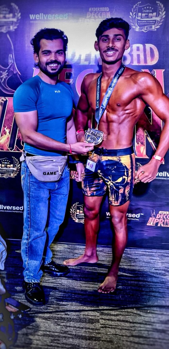 गोंदिया. हैदराबाद में आयोजित राष्ट्रीय स्तर की नेचुरल बॉडीबिल्डिंग प्रतियोगिता में तिरोड़ा के युवा खिलाड़ी तपिश टेंभरे ने शानदार प्रदर्शन करते हुए तिसरा स्थान हासिल किया. तपिश ने अपने उत्कृष्ट प्रदर्शन से न सिर्फ तिरोड़ा बल्कि पूरे क्षेत्र का नाम रोशन किया है. इस प्रतियोगिता में देशभर से 1000 से अधिक प्रतिभागियों ने हिस्सा लिया, जिनमें कई राज्यों के नामी युवा बॉडीबिल्डर्स भी शामिल थे. इतनी कड़ी प्रतिस्पर्धा में तपिश ने मेंस फिजीक जूनियर (19 से कम आयु वर्ग) में बेहतरीन प्रदर्शन करते हुए तीसरा स्थान प्राप्त किया.