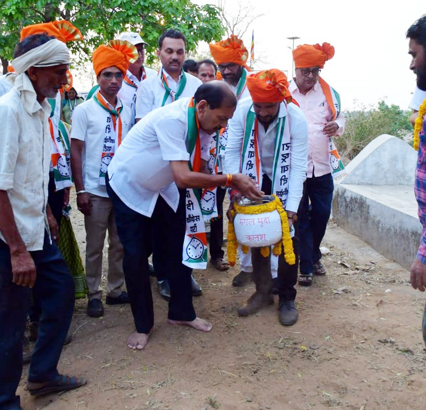 पवित्र स्थलों की मिट्टी व जल संग्रहित कर राष्ट्रवादी कांग्रेस द्वारा निकाली गई कलश यात्रा