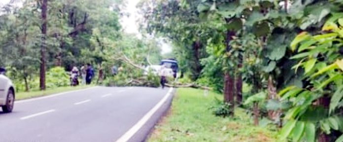 पेड़ गिरने से देवरी-आमगांव मार्ग कुछ देर के लिए ठप