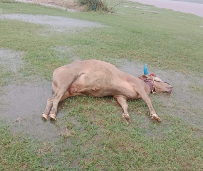 बिजली गिरने से बैल की मौत, महिला बाल-बाल बची