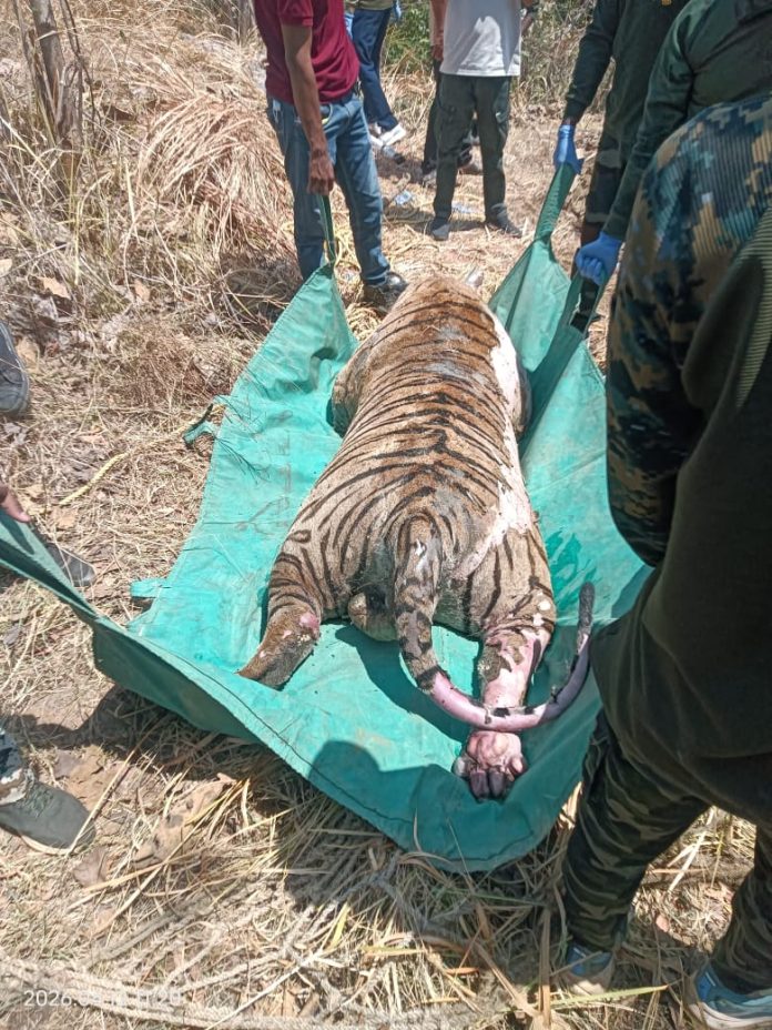 गोंदिया. पानी और शिकार की खोज में निकले बाघ की कुंए के पानी में डूबने से मौत हो गई. यह घटना रविवार, 12 अप्रैल को सुबह 10 बजे प्रकाश में आई. यह घटना नवेगांव-नागझिरा व्याघ्र प्रकल्प अंतर्गत गोंदिया जिले की तिरोड़ा तहसील अंतर्गत आनेवाले चोरखमारा परिसर के सर्रा माल्ही में घटित हुई. घटना की जानकारी मिलते ही वन विभाग के वरिष्ठ अधिकारी मौके पर पहुंचे और पंचनामा किया. शव विच्छेदन व जांच पूरी होने के पश्चात रविवार को ही बाघ का अंतिम संस्कार किया गया. बाघ की उम्र 4 से 5 वर्ष बताई जा रही है.