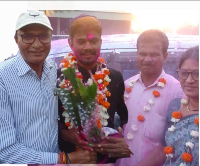 गोंदिया : महाराष्ट्र लोकसेवा आयोगाच्या परीक्षेत यश संपादन करून अन्नसुरक्षा अधिकारी म्हणून नेमणूक झालेल्या मौजा भिवखिडकी (ता. अर्जुनी मोरगाव, जि. गोंदिया) येथील उमेश मार्तंड कापगते यांचे गावी प्रथम आगमन झाल्यानिमित्त भव्य स्वागत समारंभ आयोजित करण्यात आला. सदर स्वागत सोहळ्यात प्रमुख पाहुणे म्हणून राष्ट्रवादी काँग्रेस पक्ष (अजित दादा गट) तालुका अध्यक्ष लोकपाल गहाणे उपस्थित होते. यावेळी उमेश कापगते यांचे वडील मार्तंड कापगते, आई तसेच संपूर्ण आप्तपरिवार, गावातील प्रतिष्ठित व्यक्ती, युवक-युवती मोठ्या संख्येने सहभागी झाले होते.