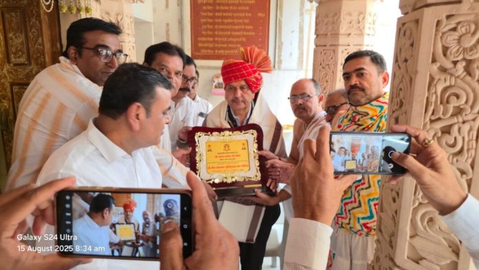 गोंदिया. महाराष्ट्र शासन में कौशल्य,उद्योजकता,नाविन्यता विभाग के मंत्री आदरणीय श्री मंगल प्रभात जी लोढा स्वतंत्रता दिवस पर आयोजित शासकीय समारोह में ध्वजारोहण हेतु गोंदिया पधारे, शासकीय कार्यक्रम में व्यस्तता के बावजूद भी स्वयं स्फुर्ति से श्री आदिनाथ जैन श्वेताम्बर मंदिर दर्शन हेतु पधारकर प्रभु व दादा गुरुदेव जी की प्रतिमा का दर्शन लाभ लिया, मंदिर के मनमोहक वास्तुशिल्प की उन्होंने खूब सराहना की, गोंदिया संघ के अध्यक्ष दिनेश बैद ने उन्हें गोंदिया शहर में जैन मंदिर के इतिहास व संघ द्वारा संचालित दादाबाड़ी, आराधना भवन, जैन कुशल भवन की जानकारी प्रदान की।