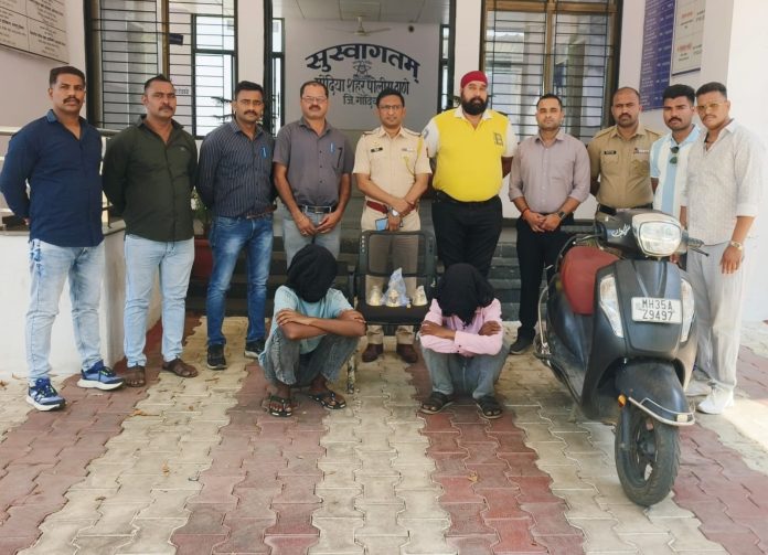 जानकारी के अनुसार, चुटिया के भगवान श्रीराम मंदिर में अज्ञात व्यक्तियों ने चोरी की थी. चुटिया निवासी फिर्यादी उमेश गोमाजी पारधी (35) की शिकायत पर शहर पुलिस ने मामला दर्ज किया था. जिसकी जांच हवलदार दीपक रहांगडाले कर रहे थे. पुलिस निरीक्षक किशोर पर्वते के मार्गदर्शन डीबी टीम के पुलिस उपनिरीक्षक अनिल डोंगरवार व पुलिस अंमलदार 27 अप्रैल को गश्त पर थे. इसी दौरान जानकारी मिली कि साहिल उर्फ रसुल रशीद शेख व उसके दो साथिदारों ने मंदिर में चोरी की है. जानकारी के आधार पर संदिग्ध आरोपी साहिल उर्फ रसुल रशीद शेख (24) को हिरासत में लिया गया. उसकी गहनता से पूछताछ करने पर उसने अपने साथिदार मुशीर उर्फ शाहरुख मुनीर शेख व एक नाबालिग युवक के साथ चोरी करने का अपराध कबुल किया. आरोपियों के पास से तीन घंटी, चार हजार रु. नकद, दो सोने की मनी, एक मोटरसाइकिल ऐसा कुल 90 हजार 400 रु. का माल जब्त किया गया. यह कार्रवाई पुलिस अधीक्षक गोरख भामरे, अपर पुलिस अधीक्षक अभय डोंगरे, उपविभागीय पुलिस अधिकारी रोहिणी बानकर के मार्गदर्शन में शहर थाने के पुलिस निरीक्षक किशोर पर्वते, डीबी टीम के पुलिस उपनिरीक्षक अनिल डोंगरवार, हवलदार कवलपालसिंग भाटिया, सतिश शेंडे, सुदेश टेंभरे, निशिकांत लोंदासे, दीपक रहांगडाले, प्रमोद चव्हाण, सिपाही दिनेश बिसेन, सुभाष सोनवाने, अशोक रहांगडाले, कुणाल बारेवार, मुकेश रावते, प्रमोद शेंडे, सोनू नागपुरे, राकेश बंजारे, अजय बोपचे ने की.