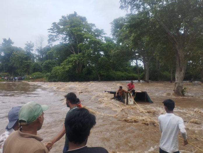 गोंदिया : सालेकसा तहसील में बादल तो नहीं थे, लेकिन पड़ोसी राज्य छत्तीसगढ़ में सुबह भारी बारिश हुई, जिससे महाराष्ट्र और छत्तीसगढ़ की सीमा पर स्थित बेवारटोला बांध से पानी का बहाव तेज़ हो गया, देखते ही देखते कुआढास नाले में बाढ़ आ गई जब पिकअप गाड़ी जांभली गांव के पास पुल के ऊपर से गुज़र रही थी, तभी अचानक बाढ़ आ गई. जांभळी गाव के पास पुल पर से गुजरने वाला पीक वाहन अचानक बाढ में बहने लगा लेकिन गाड़ी एक पत्थर में फंस गई और गांव वाले गाड़ी में फंसे दोनों युवकों की जान बचाने में कामयाब रहे.