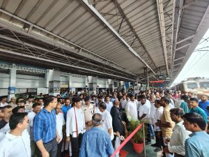 इस अवसर पर रेलवे प्रशासन के वरिष्ठ अधिकारीयों में वरिष्ठ मंडल वाणिज्य प्रबंधक दिलीप सिंह, मंडल सुरक्षा आयुक्त दीपचंद्र आर्य सहित रेलवे के अधिकारीगण, स्थानीय जनप्रतिनिधि, सामाजिक संगठन, एवं नागरिक बड़ी संख्या में उपस्थित रहे। समारोह के दौरान गोंदिया स्टेशन परिसर में उत्साहपूर्ण वातावरण देखने को मिला और जनसमूह ने सांसद का भव्य स्वागत किया. इस नई सेवा से गोंदिया जिले को बेहतर रेल कनेक्टिविटी, यात्रियों को समय की बचत, तथा क्षेत्रीय व्यापार, शिक्षा और पर्यटन को नया बल मिलेगा. यह ट्रेन सेवा विशेष रूप से गोंदिया वासियों के लिए सुविधा और गर्व का विषय है. इस शुभ अवसर पर उपस्थित प्रमुख गणमान्य व्यक्तियों में कांग्रेस जिला अध्यक्ष एवं पूर्व विधायक दिलीप बनसोड, शिवसेना (उद्धव ठाकरे गट) जिलाप्रमुख पंकज यादव, शहर अध्यक्ष अशोक चौधरी, विशाल अग्रवाल, जिला कांग्रेस उपाध्यक्ष जाहिर अहमद, महिला कांग्रेस जिलाध्यक्ष सौ.वंदनाताई काले, योगेश अग्रवाल (बापू), NSUI गोंदिया जिलाध्यक्ष अमन तिगाला, सौ.आशाताई जैन, सौ.अनुपमाताई पटले, मंथन नंदेश्वर, मनीष चौहान, आशीष बनसोड, अनुराग पंधरे, प्रिंस ऊके, कशिश चंद्रिकपुरे, वीरू गौर, शुभम उंगेवार, जीत गौतम तथा अन्य गणमान्य पदाधिकारी व नागरिकगण उपस्थित रहे.