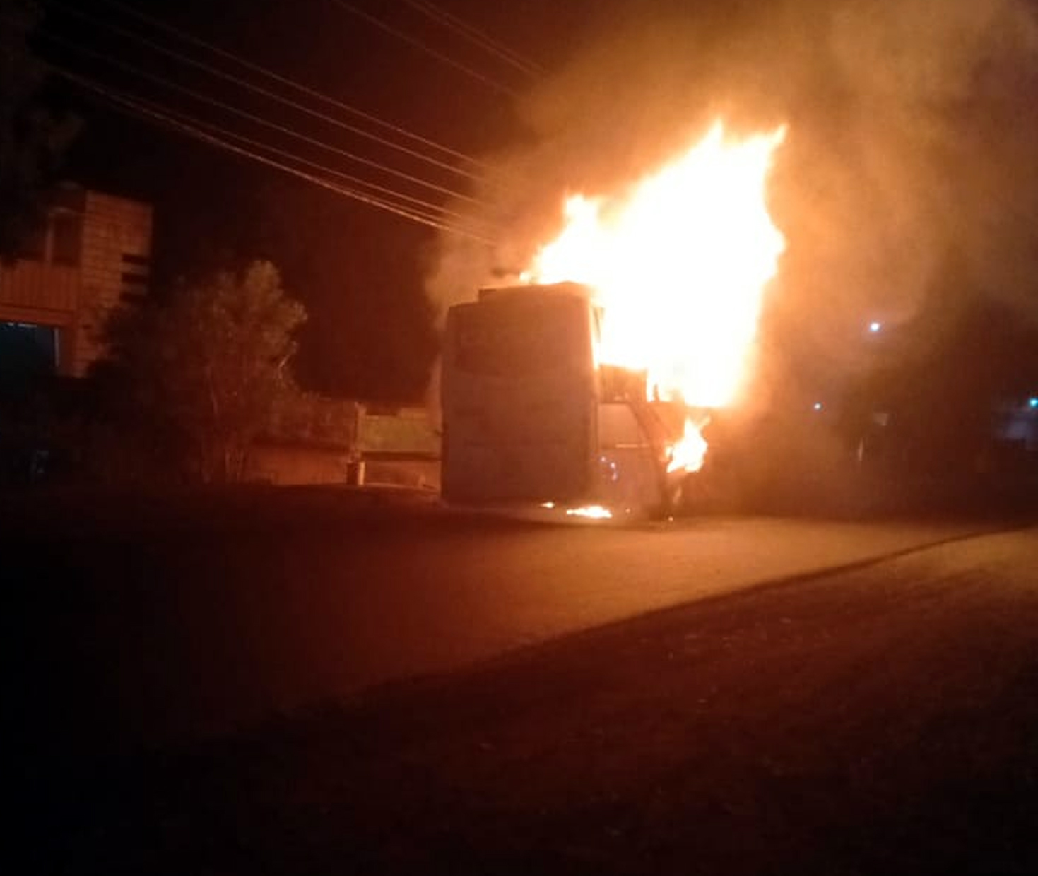 राष्ट्रीय राजमार्ग पर बस में लगी आग, चालक की सतर्कता से 23 यात्रियों की बची जान