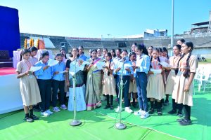 गोंदिया : सुजलाम् सुफलाम् मलयजशीतलाम् सस्यश्यामलाम्, मातरम् ……वंदे मातरम्…… वंदे मातरम्….. ने निनादले गोंदियाचे इंदिरा गांधी स्टेडियम. ‘वंदे मातरम्’ या राष्ट्र गाणला दीडशे वर्षे पूर्ण झाल्याच्या निमित्ताने सामूहिक वंदे मातरम् गीत गाण्यात आले. चांगला भारतीय नागरिक होण्यासाठी राष्ट्रभक्ती आणि एकात्मता आवश्यक आहे. यासाठी आज ‘वंदे मातरम्’च्या सामुहिक गायनाने संकल्प करूया, असे आवाहन जिल्हाधिकारी प्रजित नायर यांनी केले.
